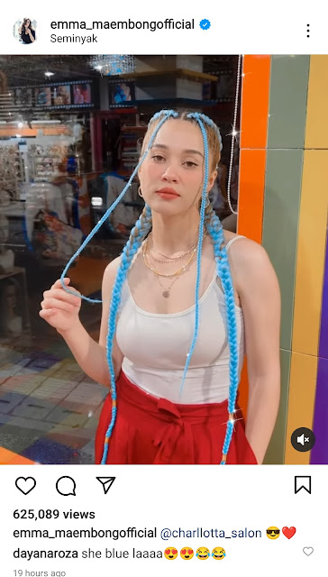 Seperti yang dilaporkan Kosmo Online, Emma atau nama sebenarnya Fatimah Rohani Ismail mencuri perhatian netizen apabila menggayakan singlet putih sendat dan berseluar merah dengan gaya rambut bertocang panjang berwarna biru.