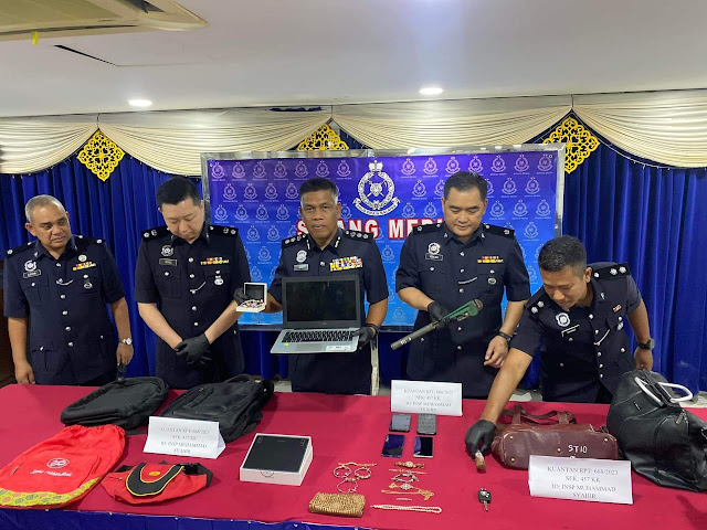 “Polis turut merampas kereta jenis Proton Waja, peralatan pecah rumah, telefon bimbit, komputer riba, jam tangan dan barangan perhiasan wanita. Siasatan lanjut untuk mengenal pasti sama ada terdapat ahli geng yang masih bebas diteruskan,” katanya pada sidang media di IPD Kuantan.